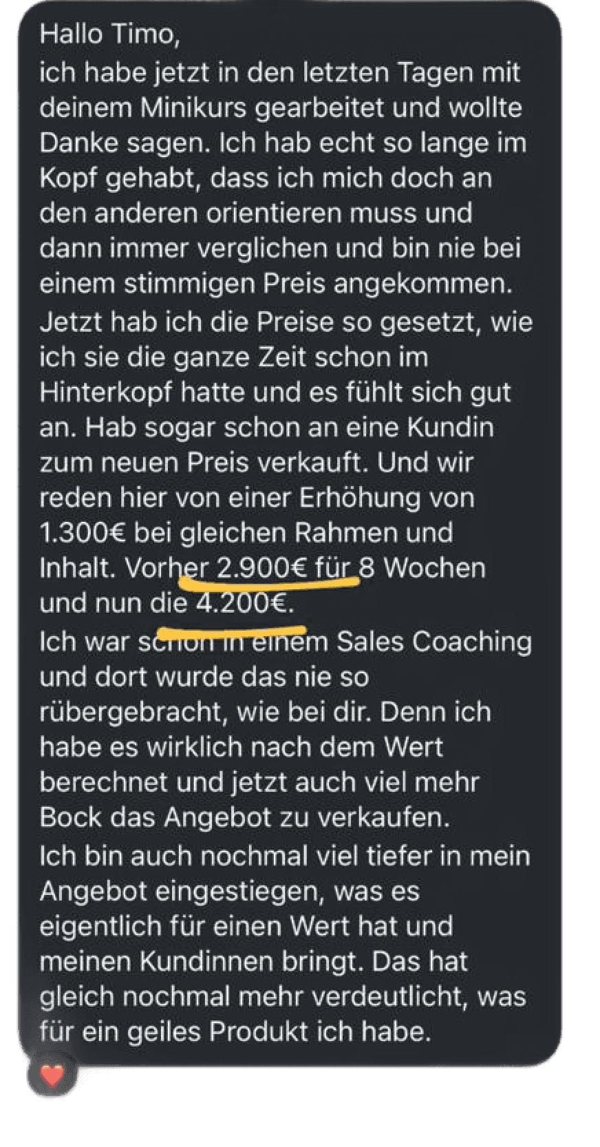 Dein Preis ist zu niedrig. Du weißt es. Und niemand hat dir je gezeigt, wie du das änderst.