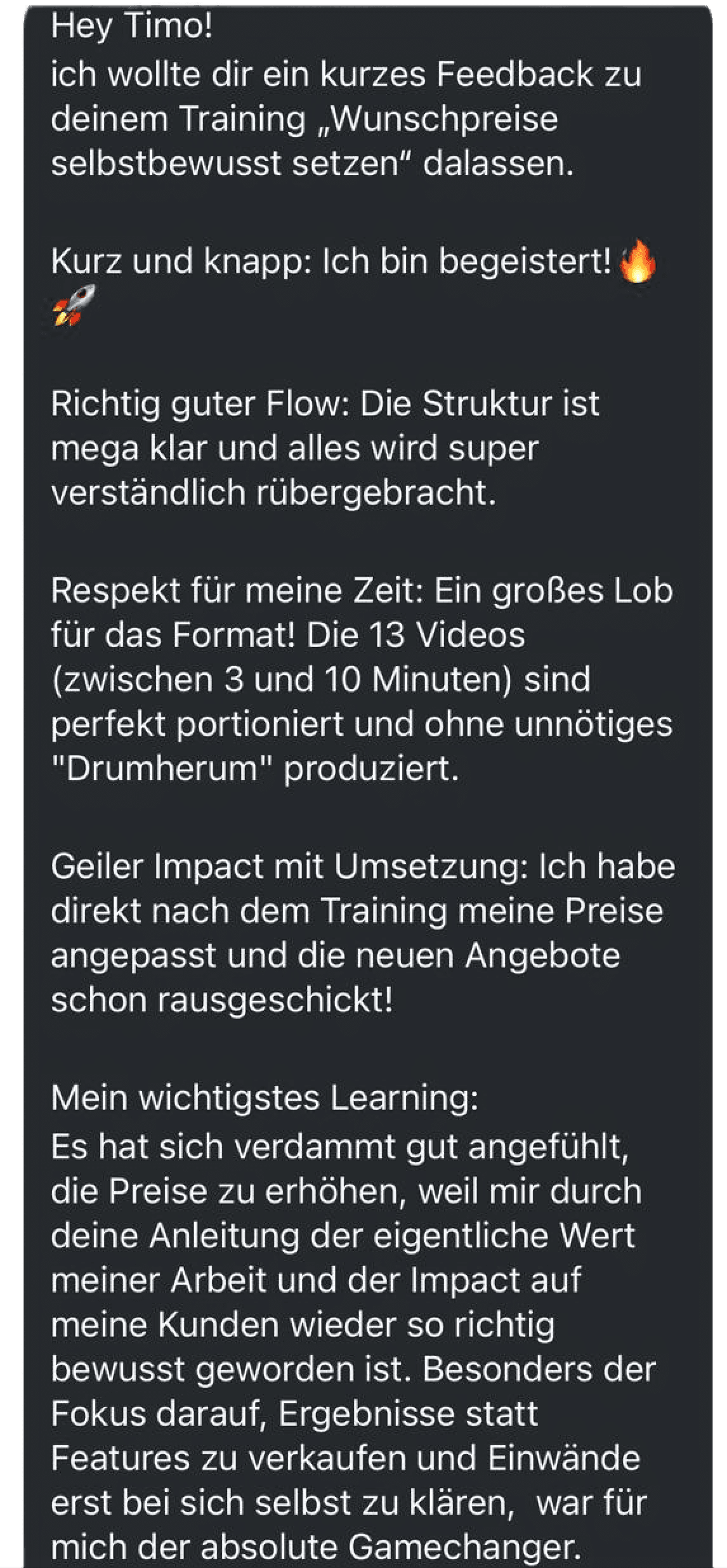 In diesem 60 Minuten Training lernst du mit einfachen Techniken deinen Preis zu setzen um mehr Umsatz zu machen.